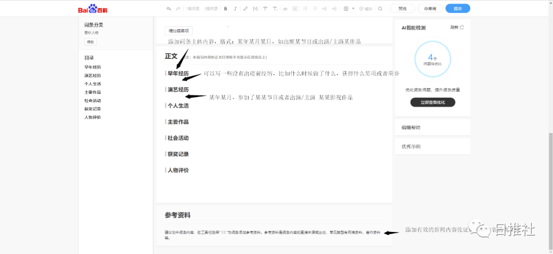 5、可以详细介绍词条的主体内容,添加参考资料佐证词条内容