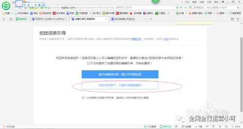 3、点击,我来创建即可。新手的话,一般需要选择上面的看一下,创建百科词条的规则,这样更有利于自己创建词条。但是如果仔细把小编的文章看啦。直接选择资深用户就可以啦。省去很多步骤。