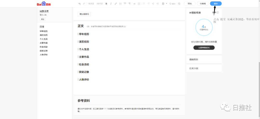 5、可以详细介绍词条的主体内容,添加参考资料佐证词条内容
